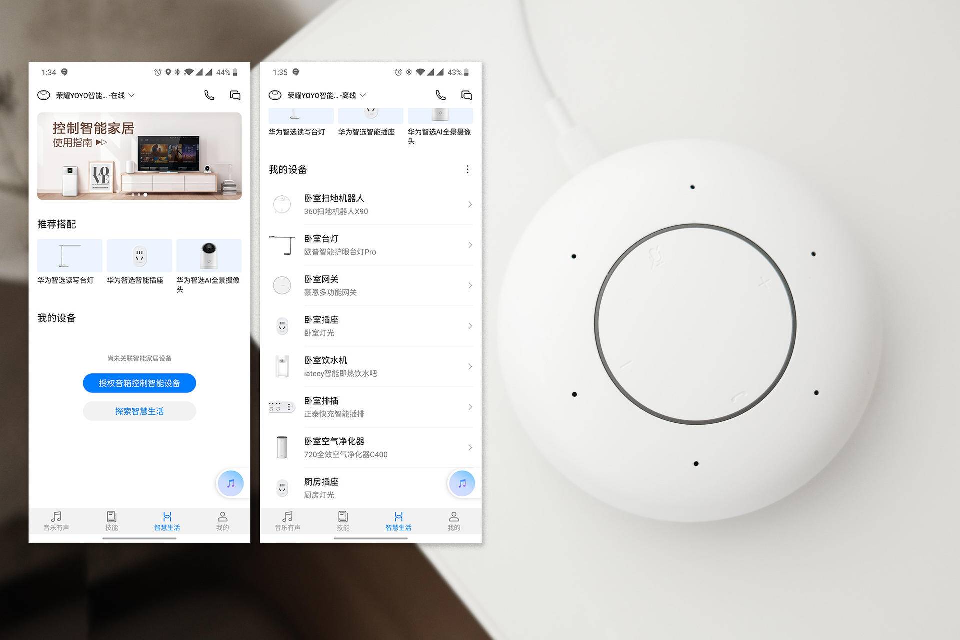 智能家居必然少不了语音的控制,在家中的时候随时一句语令就可以控制家电。华为HiLink生态有多款智能音箱提供选择,包括高端的华为Sound X,主打音质,也有价格更实惠的华为AI音箱,兼顾了智能和音质,我选择了最便宜的荣耀YOYO智能音箱,因为我的目的很明确,我只需要一个智能语音接入口,荣耀YOYO智能音箱只需要百元以内的价格很划算。