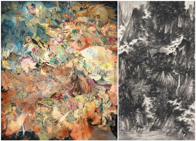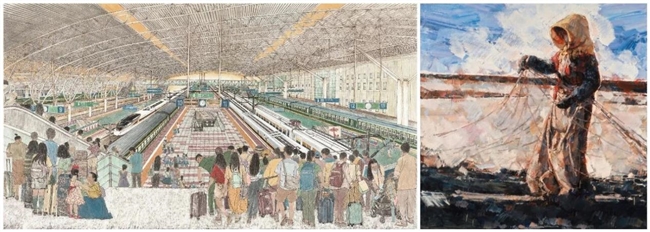 “乘长风”·徐亚慧 《盛世中华筑梦行》中国画、“登高楼”·李建鹏 《太湖渔歌》油画